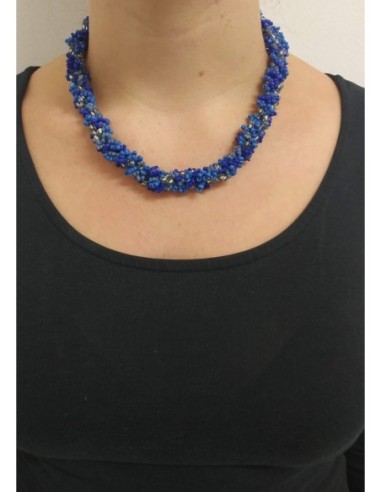 Collana perline col. bluette, blu e trasparenti